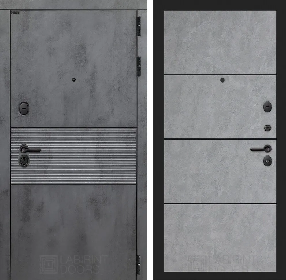 Современная MDF панель 10 мм с наличником, цвет "Бетон темный", вставка черный молдинг Покраска металла Шагрень черная
